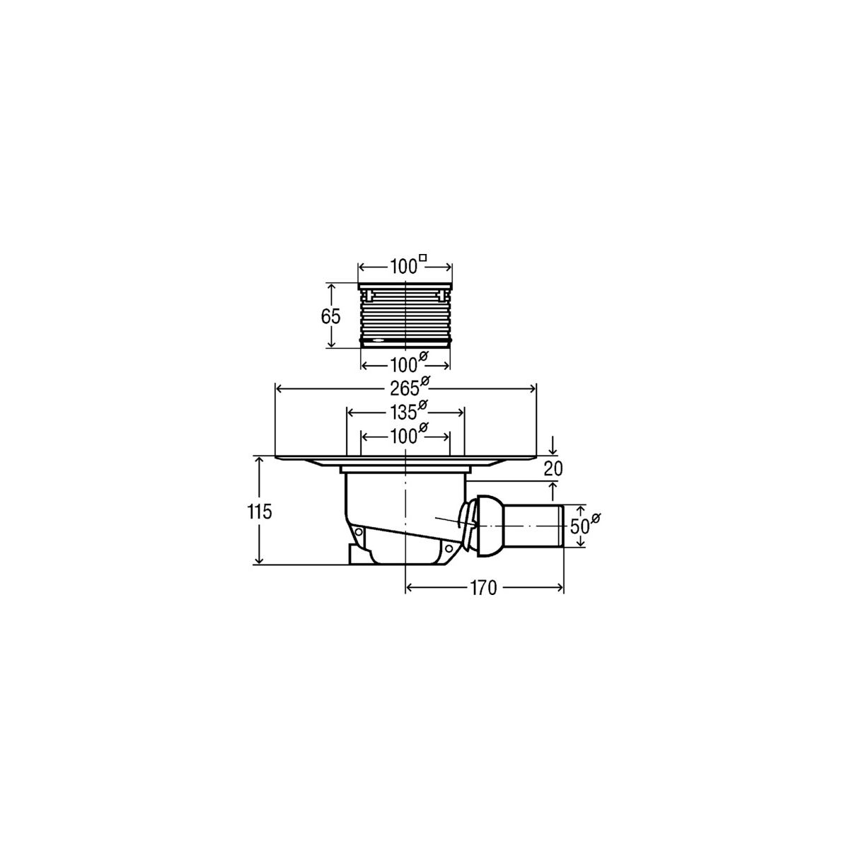 - Abflussleistung bei 20 mm Stauhöhe 0,9 l/s