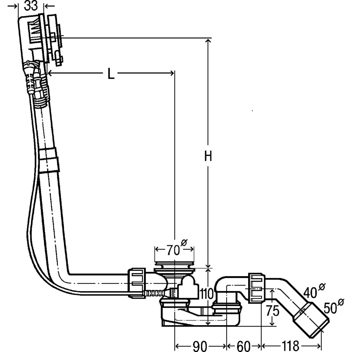 - Siphonhöhe 50 mm