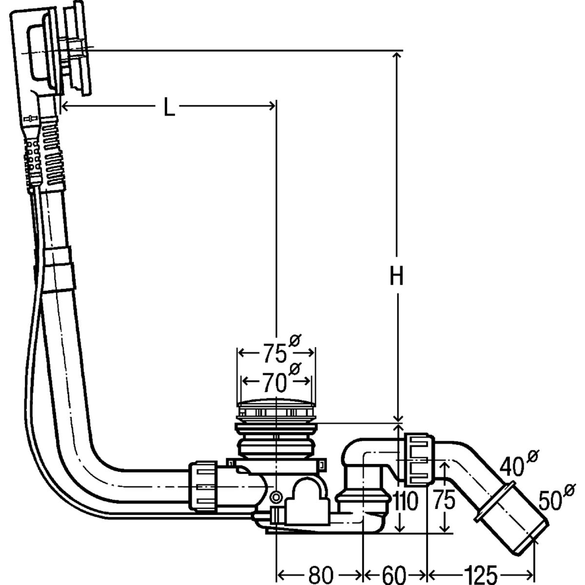 - Höhe der Siphonierung 50 mm