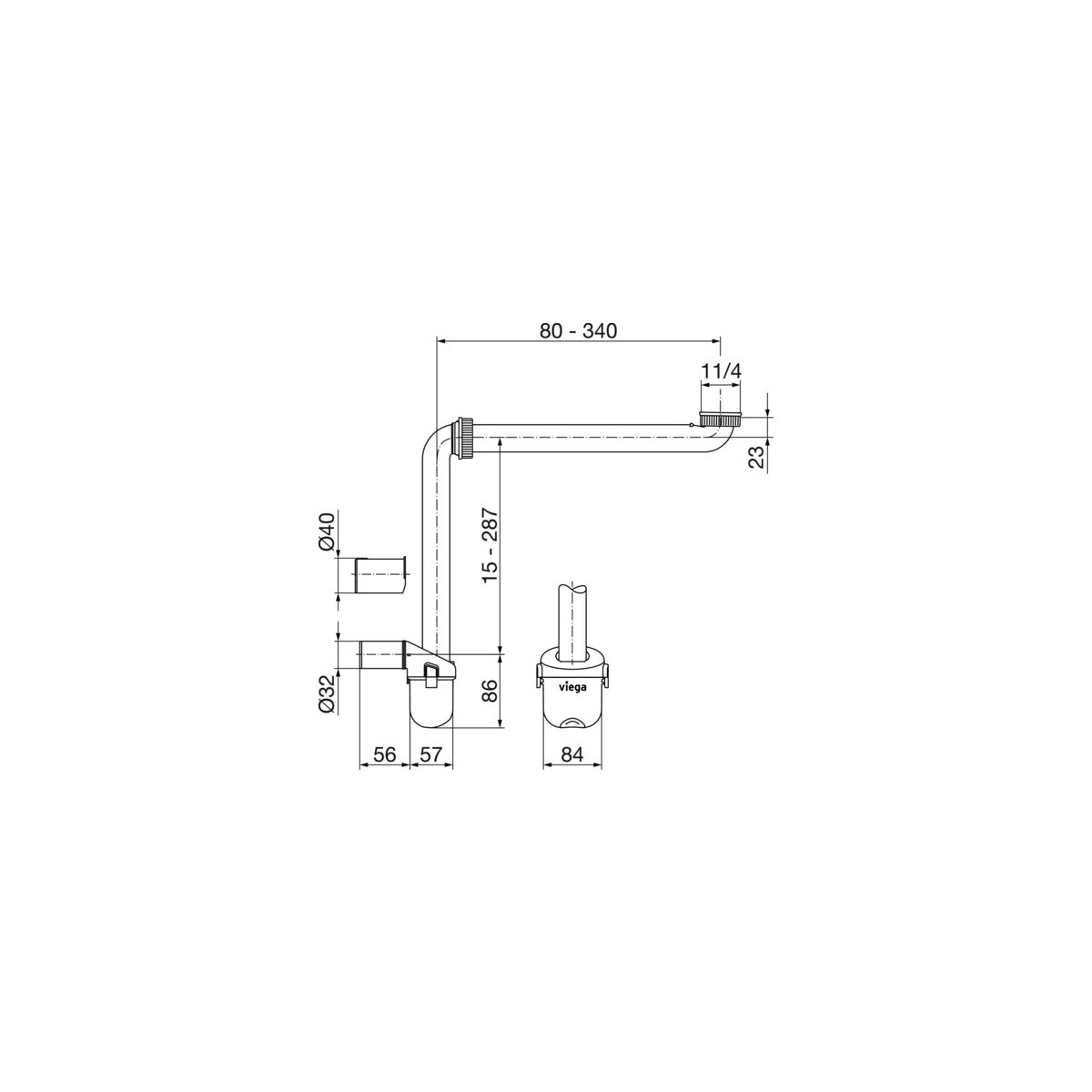 Viega Siphon für das Waschbecken Rohr weiß 804688