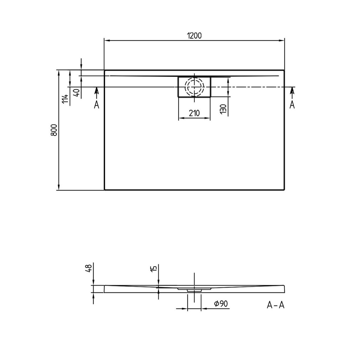 - Durchmesser des Abflusses: 90 mm