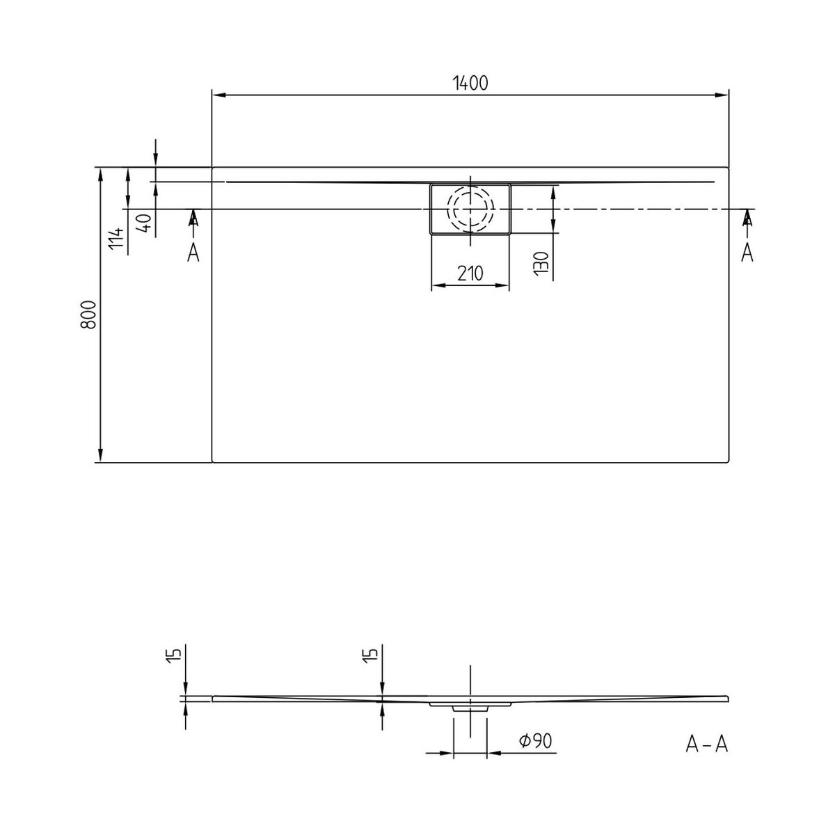 - Durchmesser des Abflusses: 90 mm