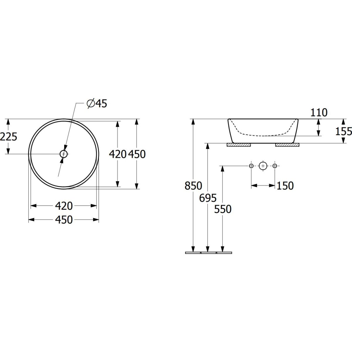 - Außenmaße: Ø 45 cm