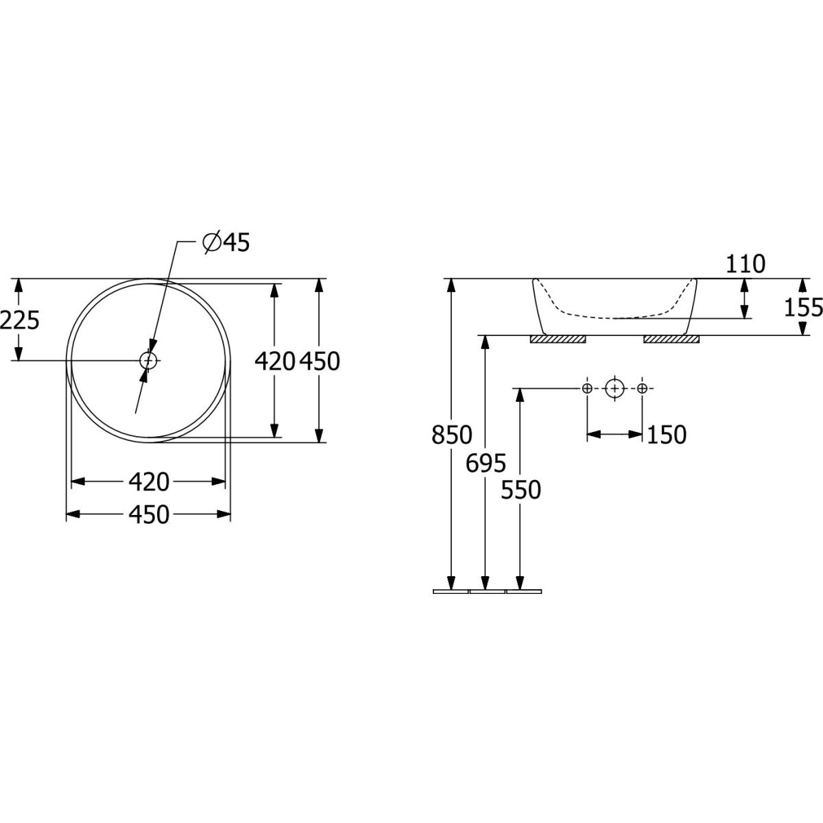 Villeroy & Boch Architectura Waschbecken 45x45 cm rund Aufsatzwaschbecken weiß 5A2546R1