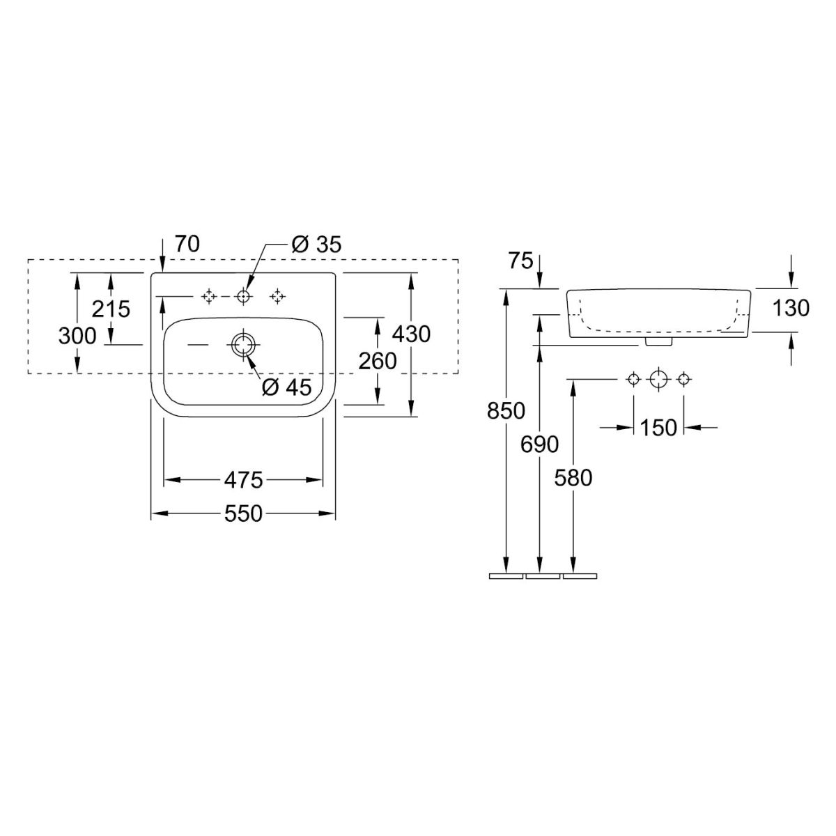 Villeroy & Boch Architectura Waschbecken 55x43 cm rechteckig weiß 419055R1