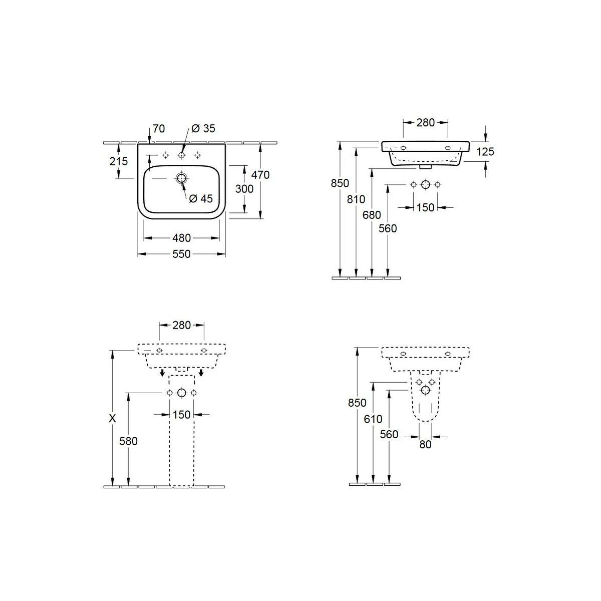 Villeroy & Boch Architectura Waschbecken 55x47 cm rechteckig Klassisch weiß 418855R1