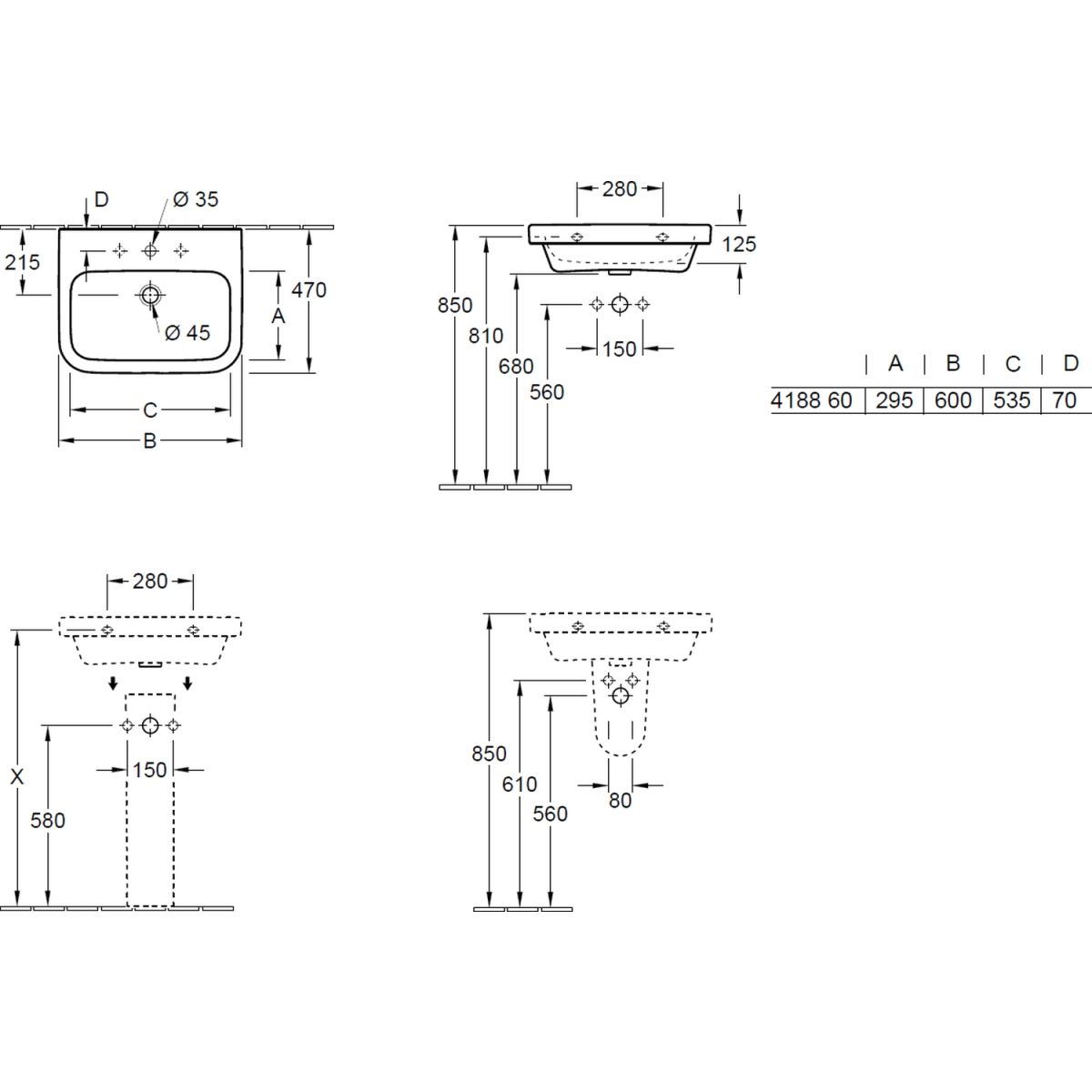 Villeroy & Boch Architectura Waschbecken 60x47 cm rechteckig Klassisch weiß 418860R1