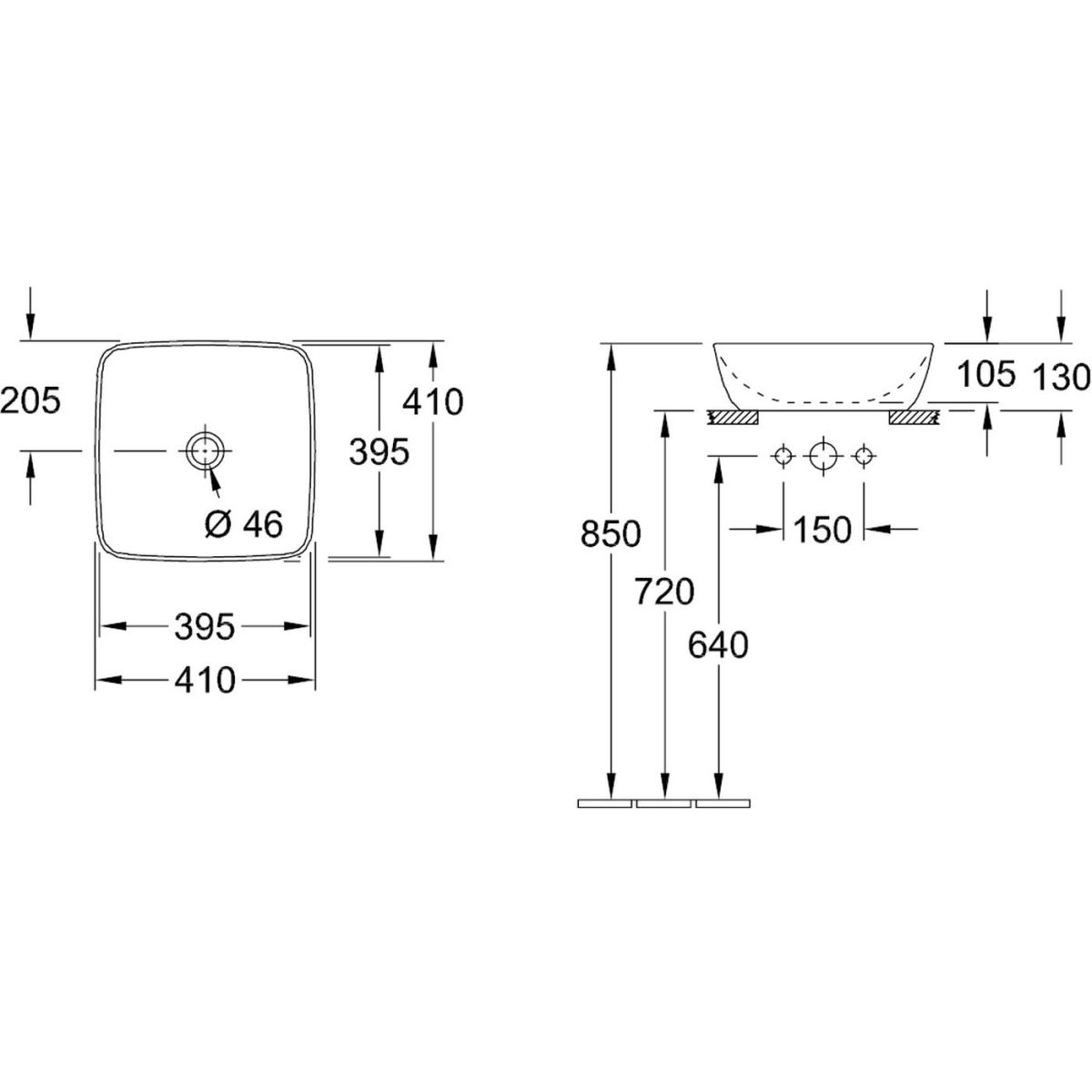 - ohne Wasserhahnloch