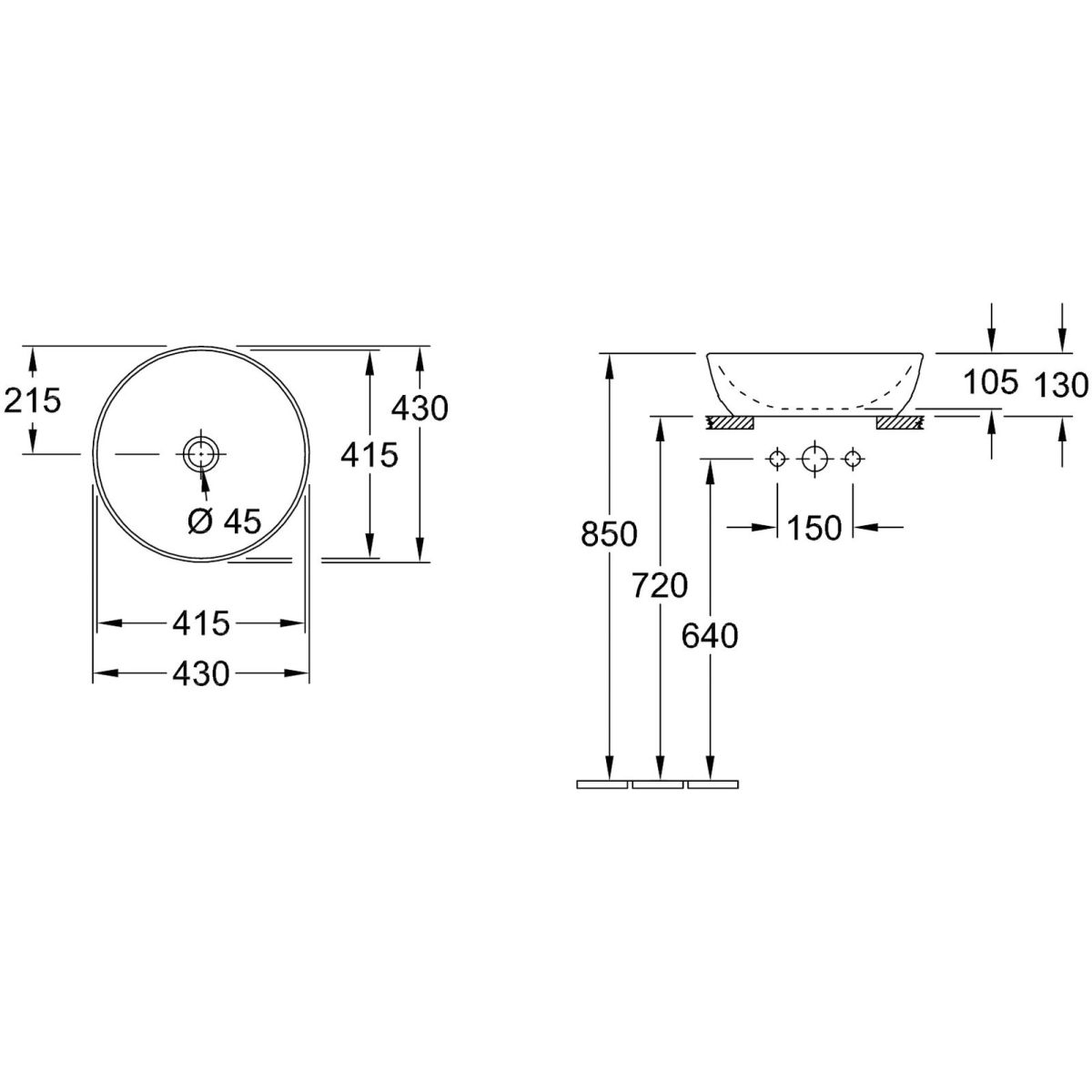 - ohne Wasserhahnloch