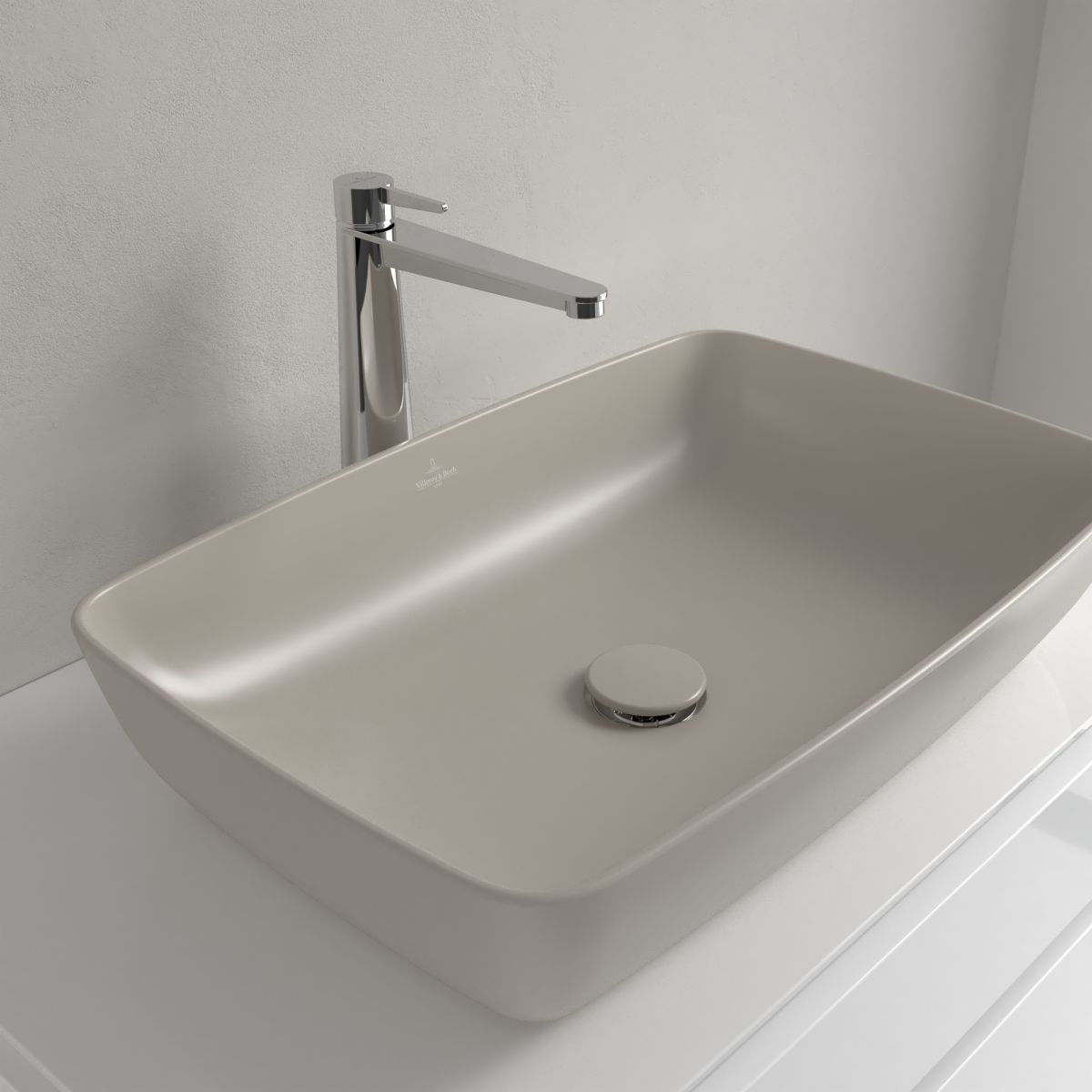 Das rechteckige Aufsatzwaschbecken aus der Artis-Kollektion von Villeroy & Boch besticht durch seine besonders dünnen Wände und zarten Konturen dank des innovativen TitanCeram-Materials, das selbst Waschbecken mit schmalen Rändern extrem widerstandsfähig und langlebig macht. Das Waschbecken hat außerdem eine praktische Tiefe von 10 cm, die das Händewaschen sehr komfortabel macht und den Bereich um das Waschbecken vor Spritzwasser schützt. Dank der schmutzabweisenden Oberfläche ist die Reinigung äußerst einfach. Die moderne, matte Oberfläche eignet sich hervorragend als Designakzent. Zusammen mit den passenden Möbeln aus der Legato- oder Finion-Kollektion wird das Waschbecken zu einem echten Blickfang im Badezimmer.