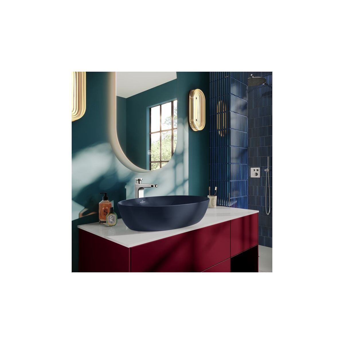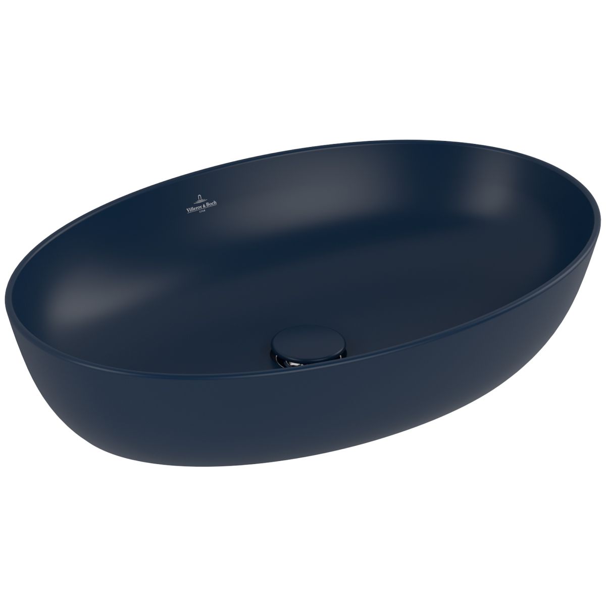 Das ovale Aufsatzwaschbecken aus der Artis-Kollektion von Villeroy & Boch besticht durch seine besonders dünnen Wände und zarten Konturen dank des innovativen Materials TitanCeram, das selbst Waschbecken mit schmalen Rändern extrem widerstandsfähig und langlebig macht. Das Waschbecken hat außerdem eine praktische Tiefe von 10 cm, die das Händewaschen sehr bequem macht und den Bereich um das Waschbecken vor Spritzwasser schützt. Die tiefe, elegante dunkelblaue Farbe und die moderne matte Oberfläche des gesamten Waschbeckens eignen sich hervorragend als Designakzente im Badezimmer.