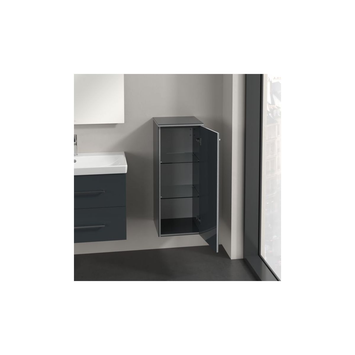 Villeroy & Boch Avento Kabinett 35x40.5x89 cm Seitenschrank hängend grau A89501B1