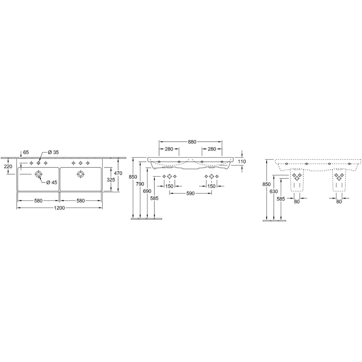 Villeroy & Boch Avento Waschbecken 120x47 cm rechteckig Klassisch-Möbel-Doppelt weiß 4A23CKRW