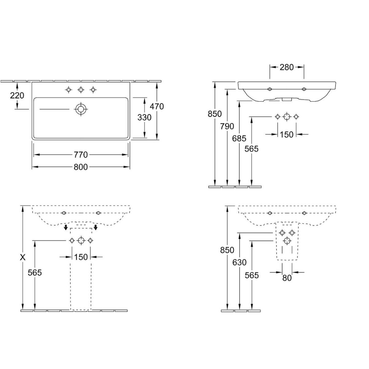 Villeroy & Boch Avento Waschbecken 80x47 cm rechteckig Klassisch-Möbel weiß 415680R1