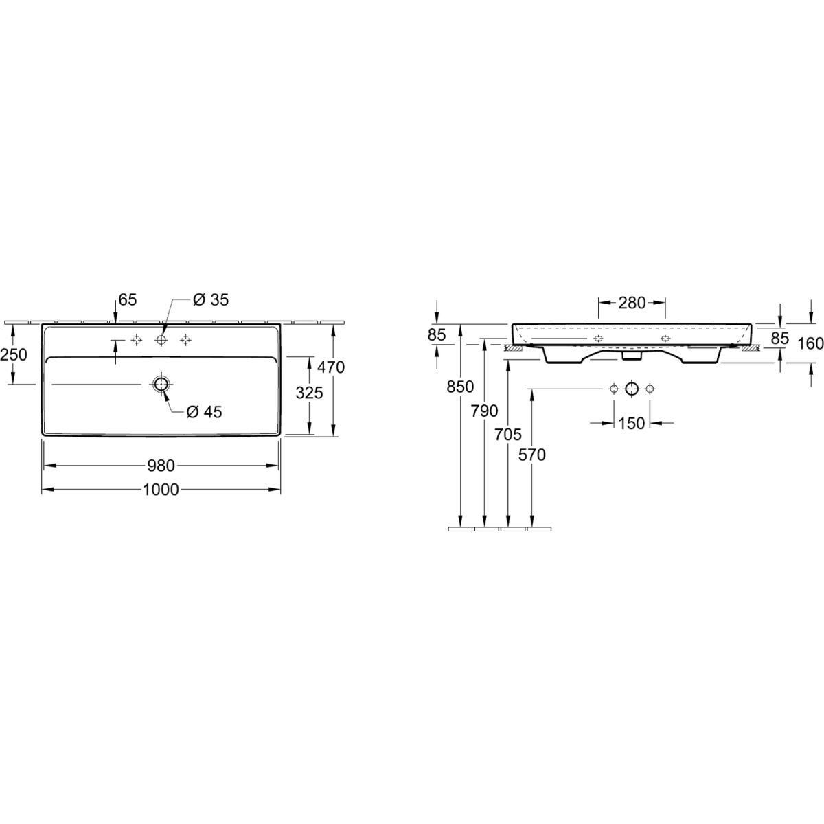 Villeroy & Boch Collaro Waschbecken 100x47 cm rechteckig Klassisch-Möbel weiß 4A331G01