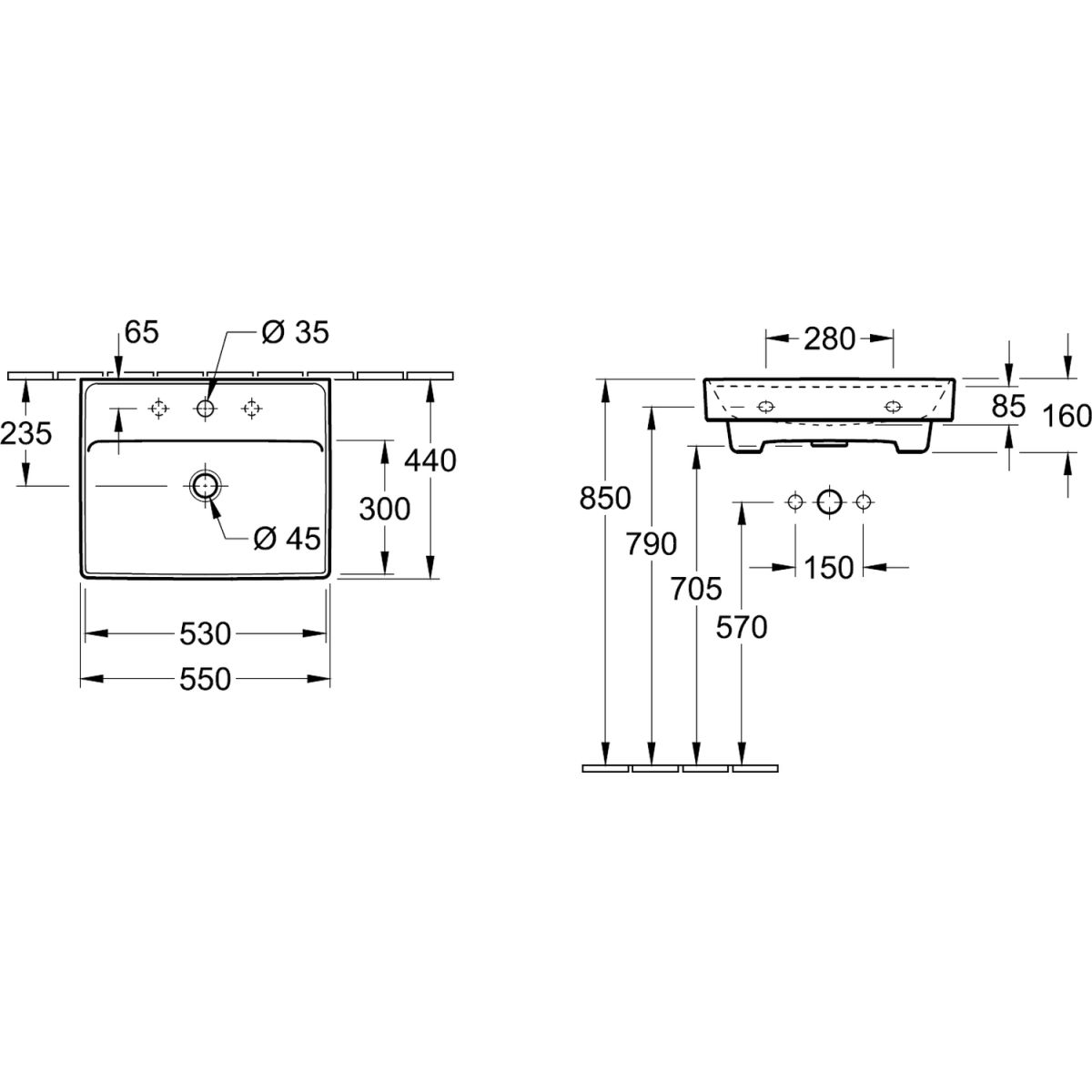 Villeroy & Boch Collaro Waschbecken 55x44 cm rechteckig Klassisch-Möbel weiß 4A335601