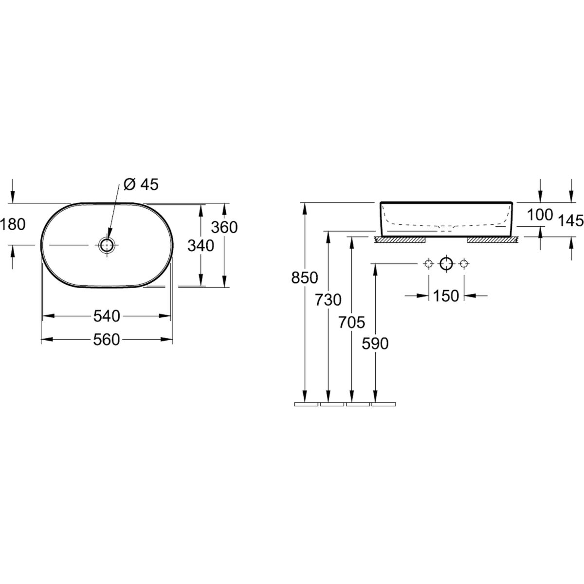 - ohne Wasserhahnloch