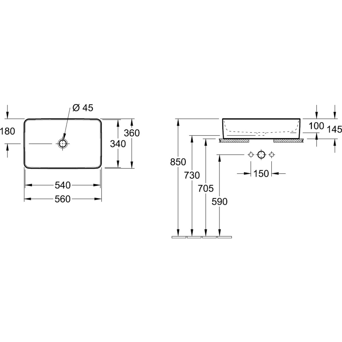 Villeroy & Boch Collaro Waschbecken 56x36 cm rechteckig Aufsatzwaschbecken weiß 4A2056R1