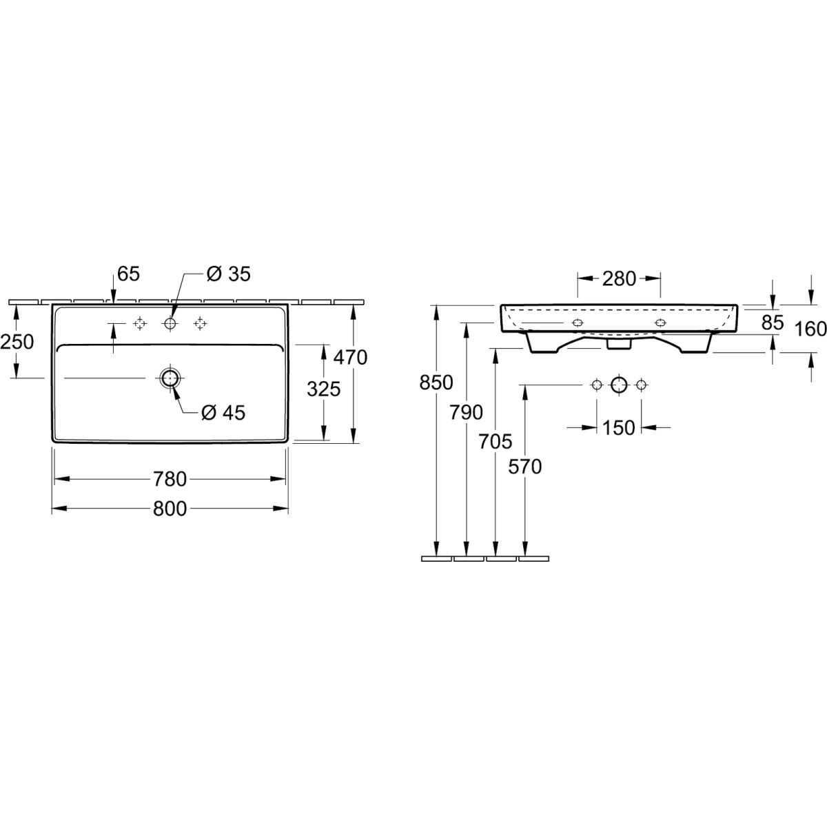 Villeroy & Boch Collaro Waschbecken 80x47 cm rechteckig Klassisch-Möbel weiß 4A338101