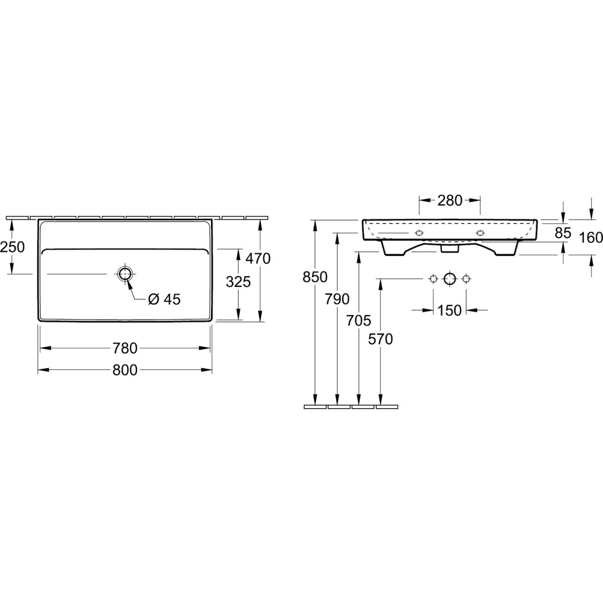 - ohne Wasserhahnloch