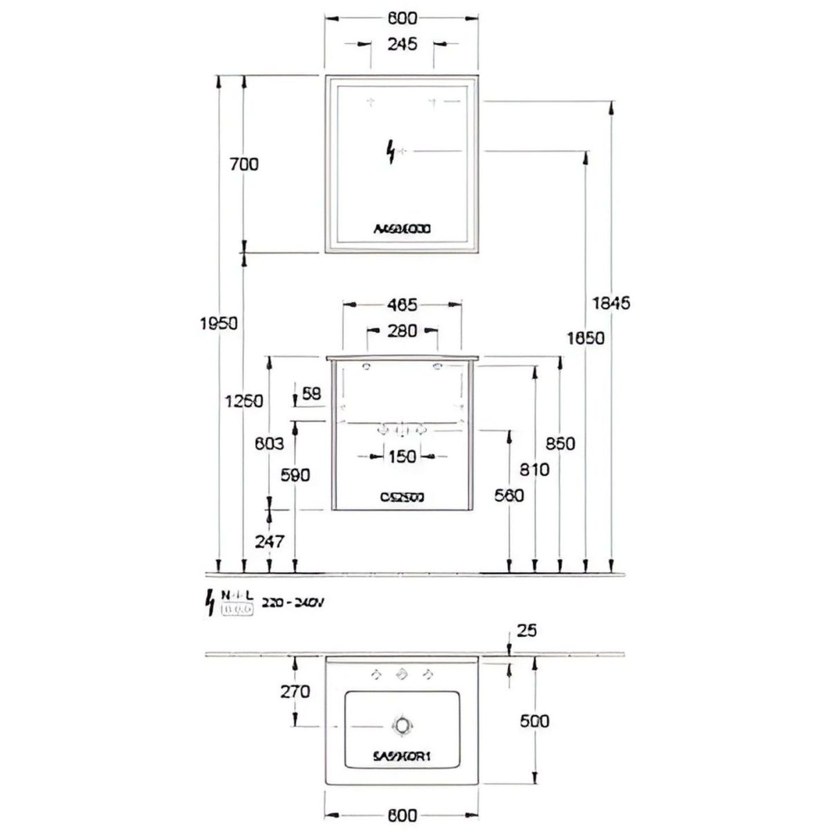 Der Preis gilt für das Möbelset: Schrank + Waschbecken + Spiegel.