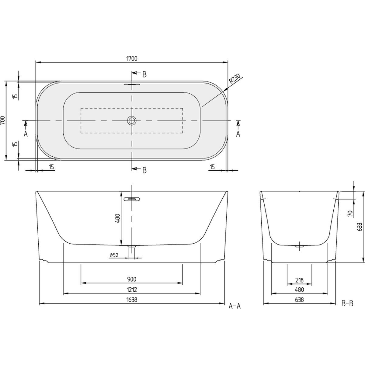 - Maße des Wannenbodens: 121,2 x 48 cm