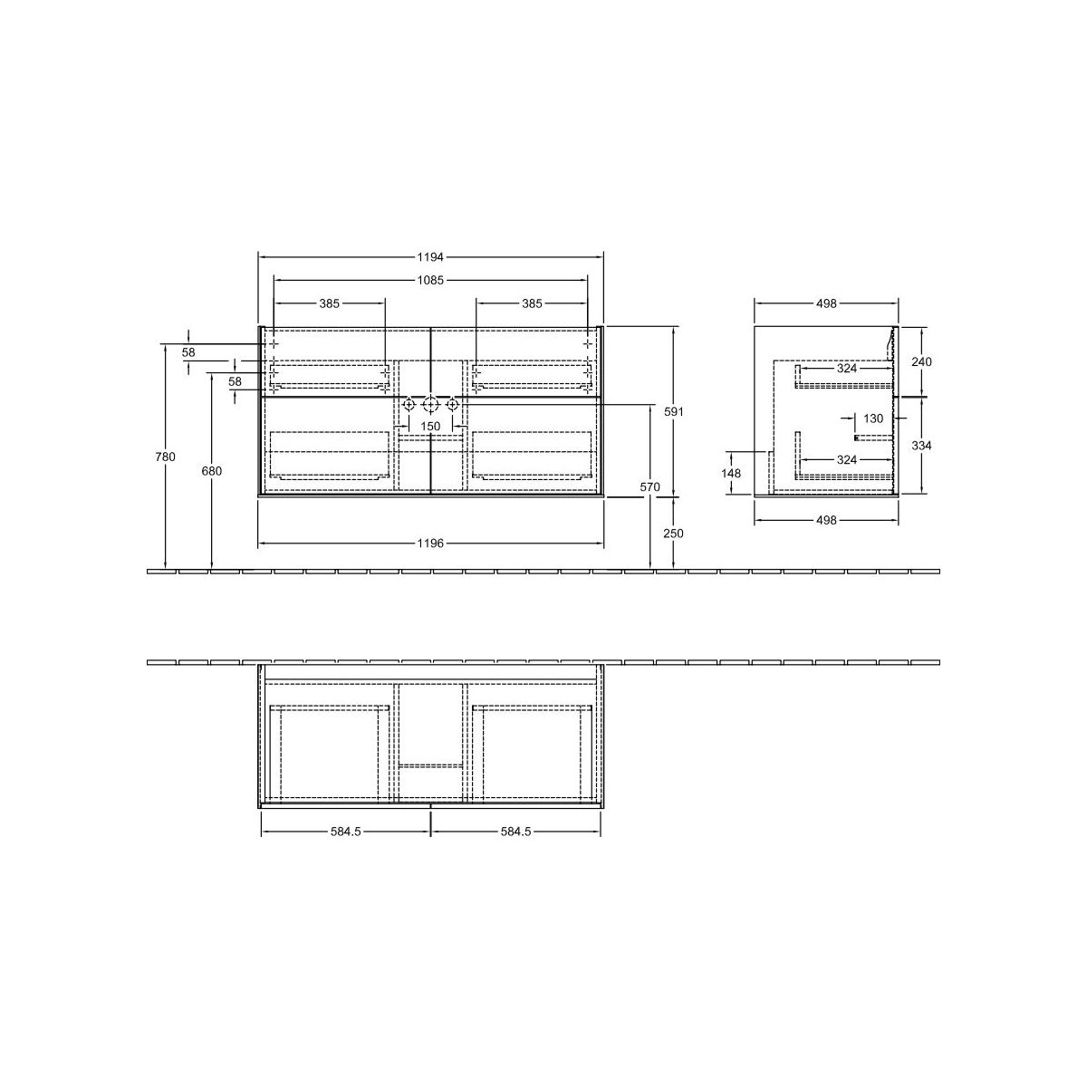 Villeroy & Boch Finion Kabinett 119.6x49.8x59.1 cm Unterschrank hängend anthrazit F05000GK
