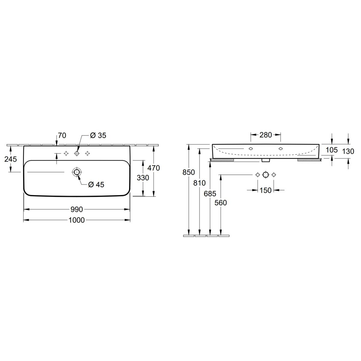 Das rechteckige Wandwaschbecken Finion verleiht Ihrem Badezimmer dank des innovativen Materials TitanCeram ein präzises und raffiniertes Aussehen. Die extrem dünnen Kanten mit außergewöhnlicher Festigkeit verleihen dem Waschbecken einen filigranen Charakter. Auf der anderen Seite überzeugen die großzügige Schale und der breite Rand für die Armatur mit ausreichend Platz für Seife, Zahnputzbecher und mehr. Die schmutzabweisende Keramikoberfläche sorgt für eine schnelle und einfache Reinigung. Dank des integrierten automatischen Stöpsels von Villeroy & Boch kann das Wasser im Waschbecken nicht überlaufen – auch wenn kein Überlaufloch vorhanden ist oder dieses verdeckt ist. Intelligent, funktional und stilvoll!