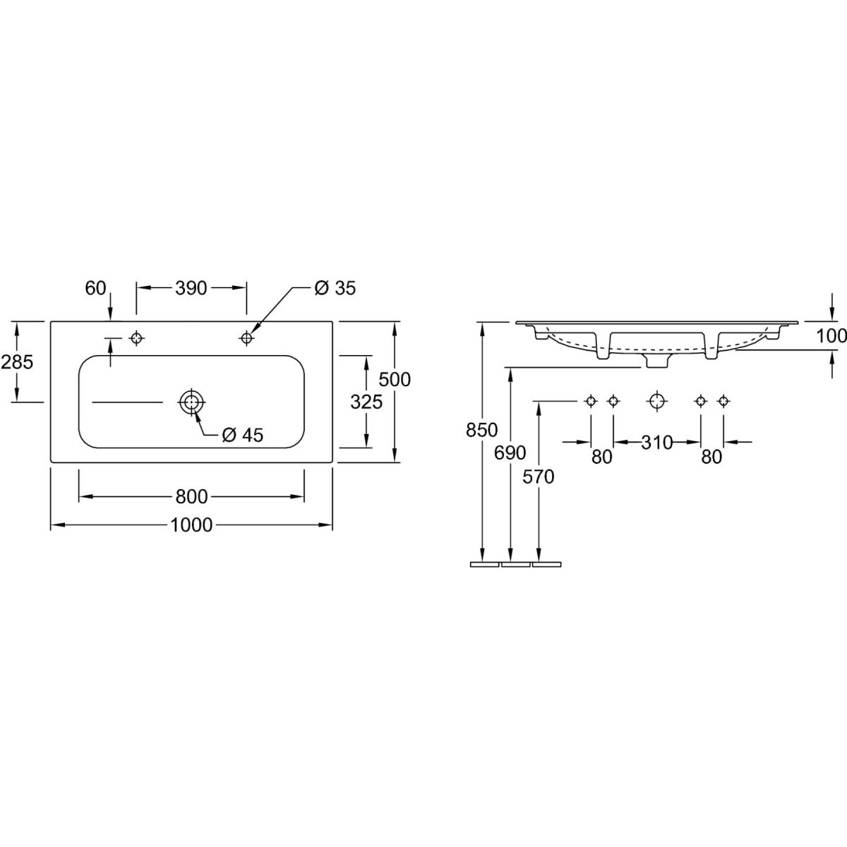 Villeroy & Boch Finion Waschbecken 100x50 cm rechteckig Möbel weiß 4164A1R1