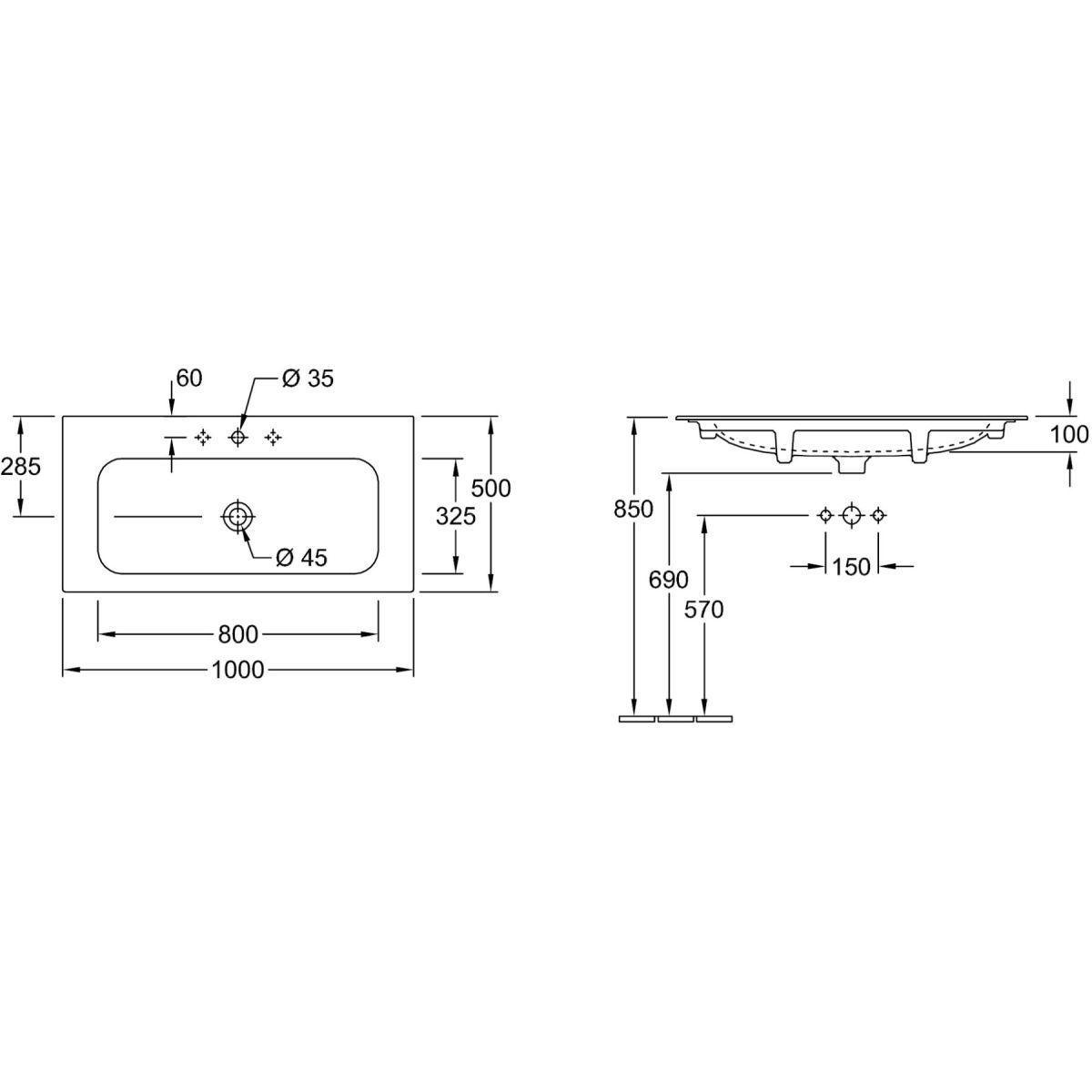 Villeroy & Boch Finion Waschbecken 100x50 cm rechteckig Möbel weiß 4164A2R1