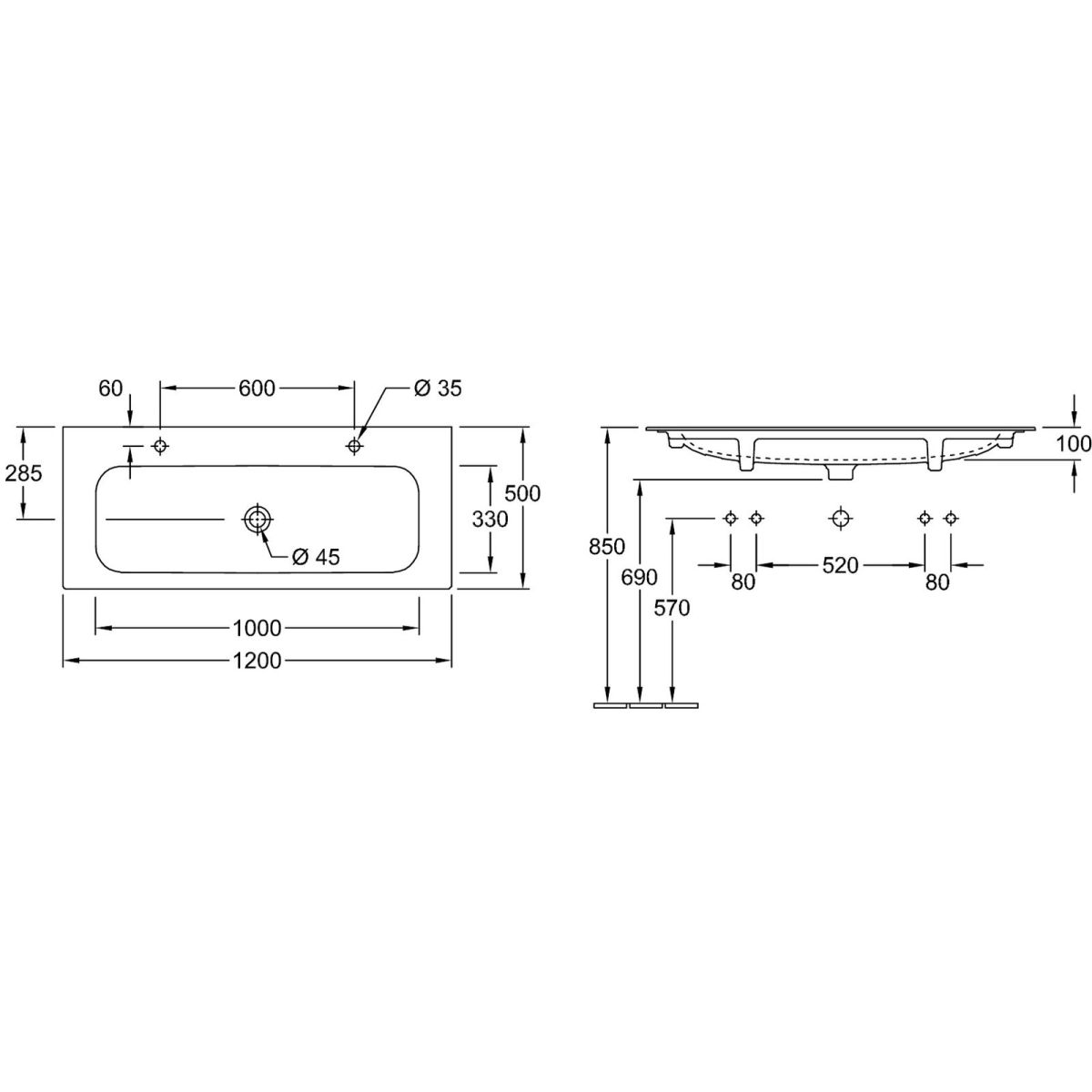 Villeroy & Boch Finion Waschbecken 120x50 cm rechteckig Möbel schwarz 4164C1R7