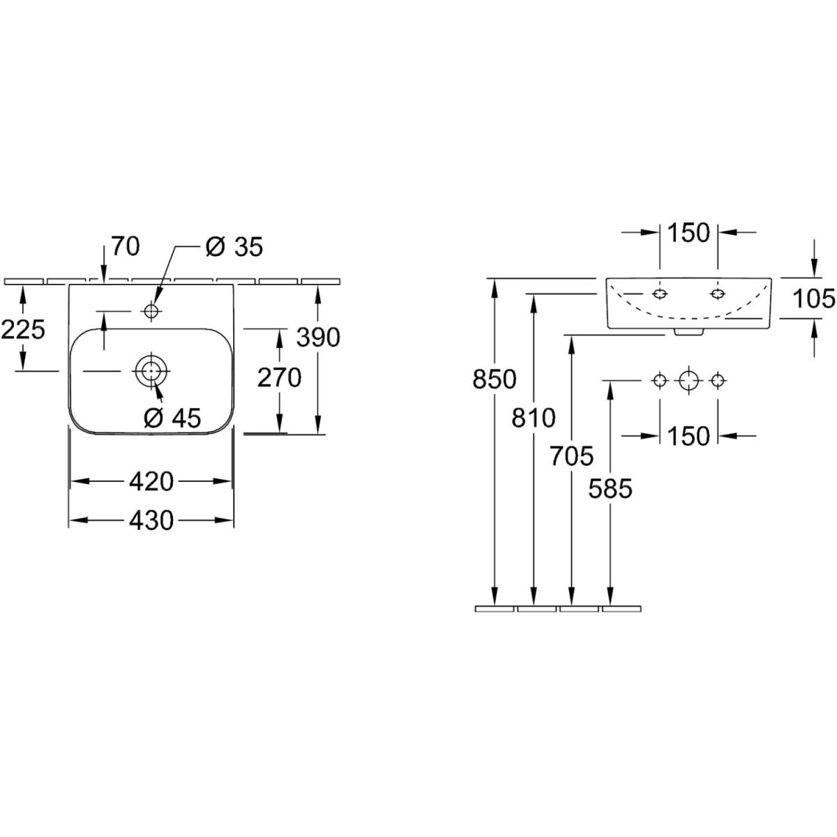 Dank seiner kompakten Abmessungen sorgt das kleine, rechteckige Waschbecken aus der Kollektion Finion von Villeroy & Boch für eleganten Komfort, insbesondere in Gästebädern und kleinen Badezimmern. Die extrem dünnen Kanten mit außergewöhnlicher Festigkeit verleihen dem Waschbecken einen filigranen Charakter – dies wird durch die Verwendung des innovativen Materials TitanCeram ermöglicht. Der integrierte Keramik-Ablaufventil rundet das elegante Erscheinungsbild ab. Funktional überzeugt das Waschbecken durch eine großzügige Beckenform, die bequemes Händewaschen ermöglicht, und einen breiten Rand mit Armaturenaussparung, auf dem auch Platz für Seife ist. Die schmutzabweisende Oberfläche sorgt für lang anhaltende Sauberkeit.