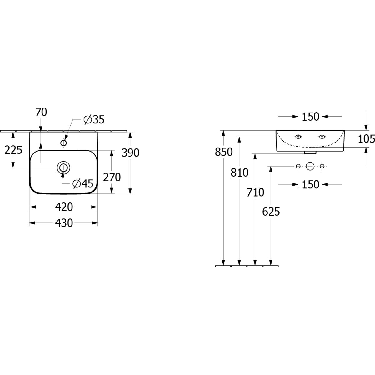 Villeroy & Boch Finion Waschbecken 43x39 cm rechteckig Klassisch schwarz 436444R7