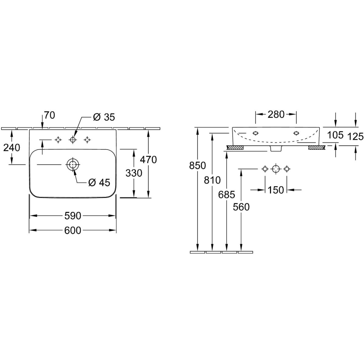 Villeroy & Boch Finion Waschbecken 60x47 cm rechteckig Klassisch-Möbel weiß 41686LR1