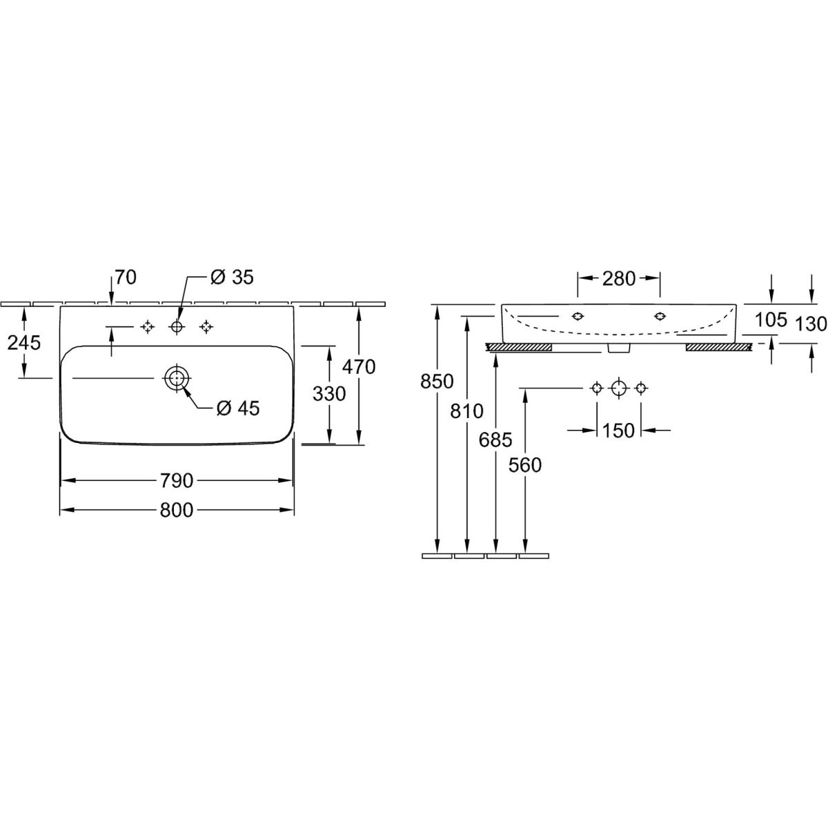 Villeroy & Boch Finion Waschbecken 80x47 cm rechteckig Klassisch-Möbel weiß 41688LR1