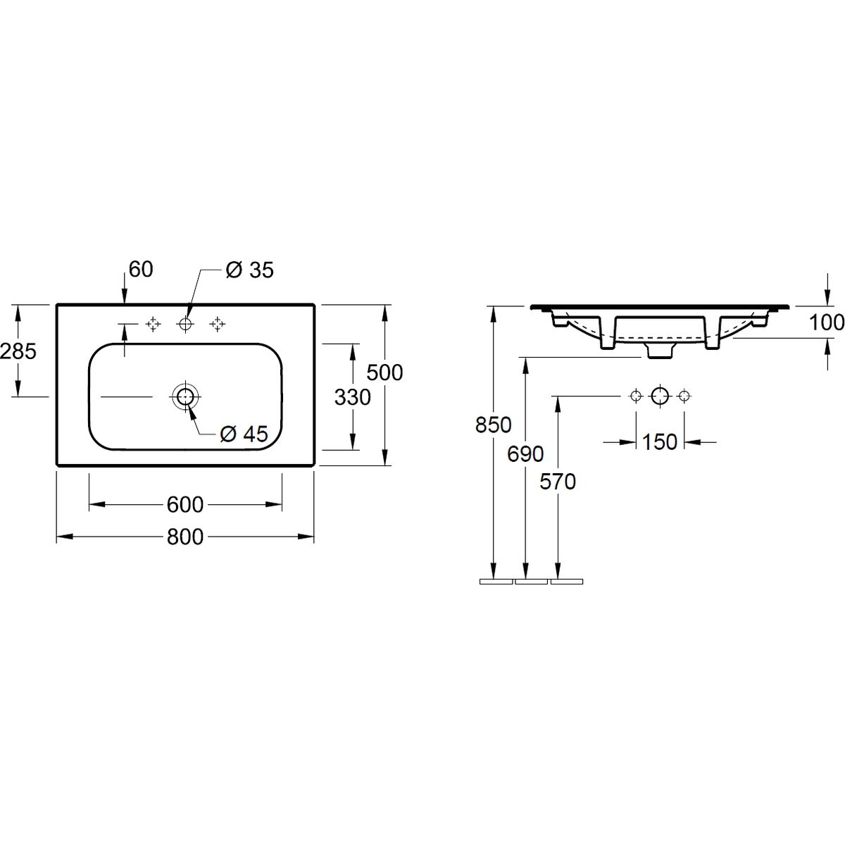 Villeroy & Boch Finion Waschbecken 80x50 cm rechteckig Möbel schwarz 416483R7