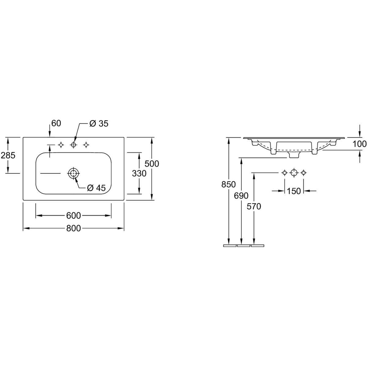 Villeroy & Boch Finion Waschbecken 80x50 cm rechteckig Möbel weiß 416484R1