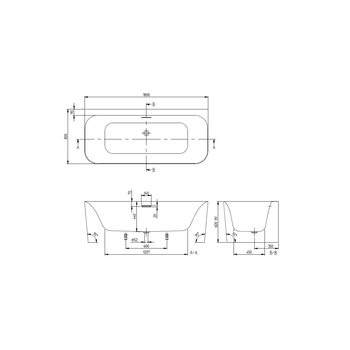 - Ablauf in der Mitte der Wanne