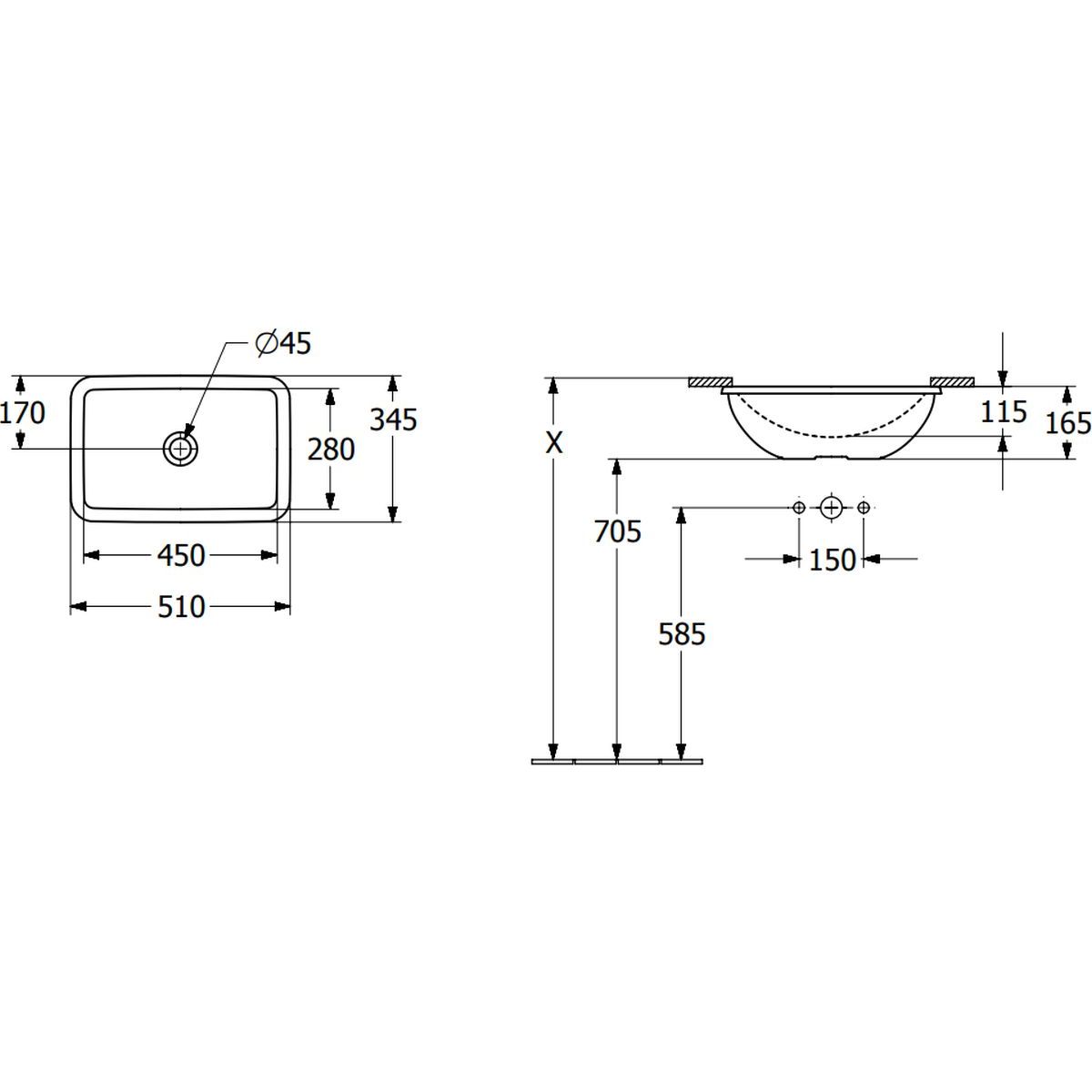 Villeroy & Boch Loop & Friends waschbecken 45x28 cm rechteckig unterblattig weiß 4A560001