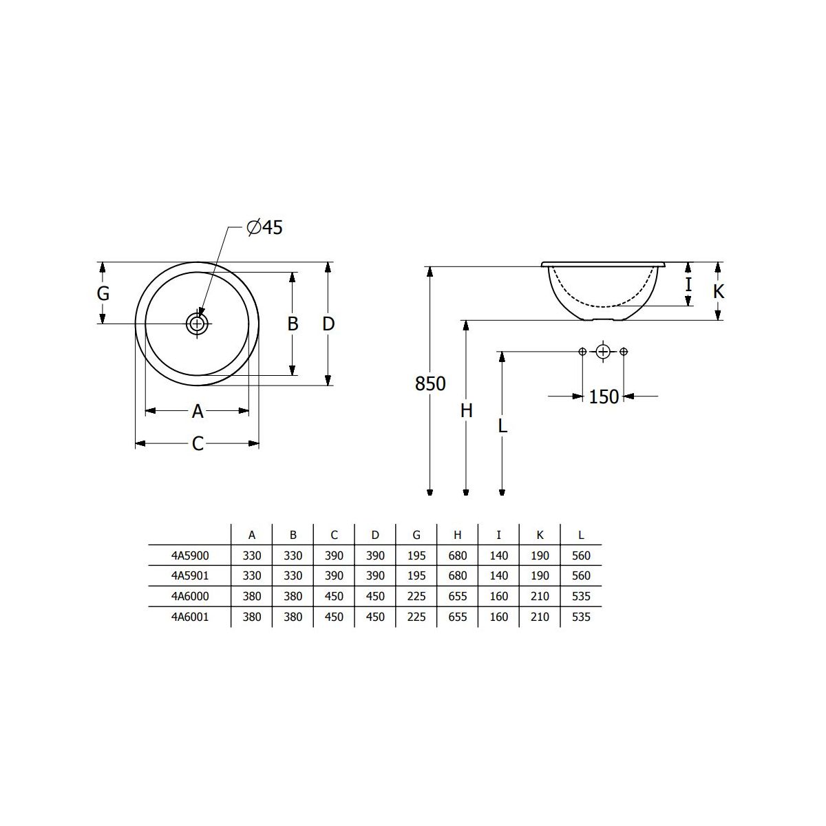 Villeroy & Boch Loop & Friends Waschbecken 45x45 cm rund Einbauwaschbecken weiß 4A600001