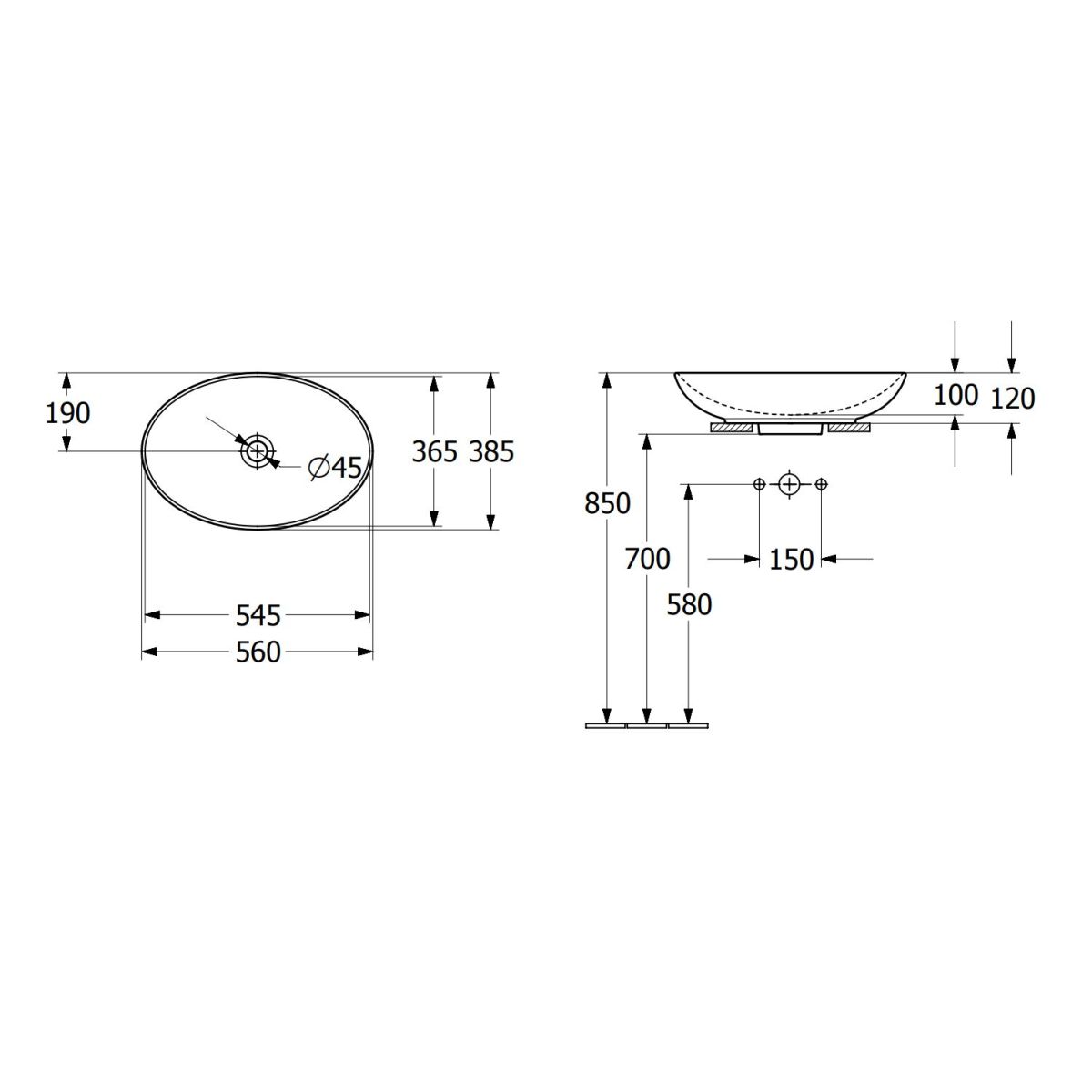 - Typ: Aufsatzwaschbecken