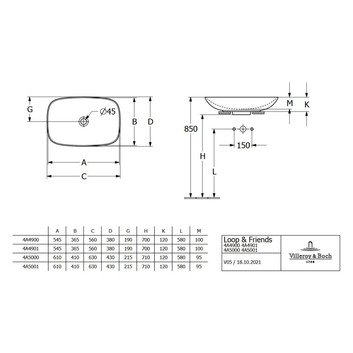 Villeroy & Boch Loop & Friends Waschbecken 63x43 cm rechteckig Aufsatzwaschbecken weiß 4A5000R1