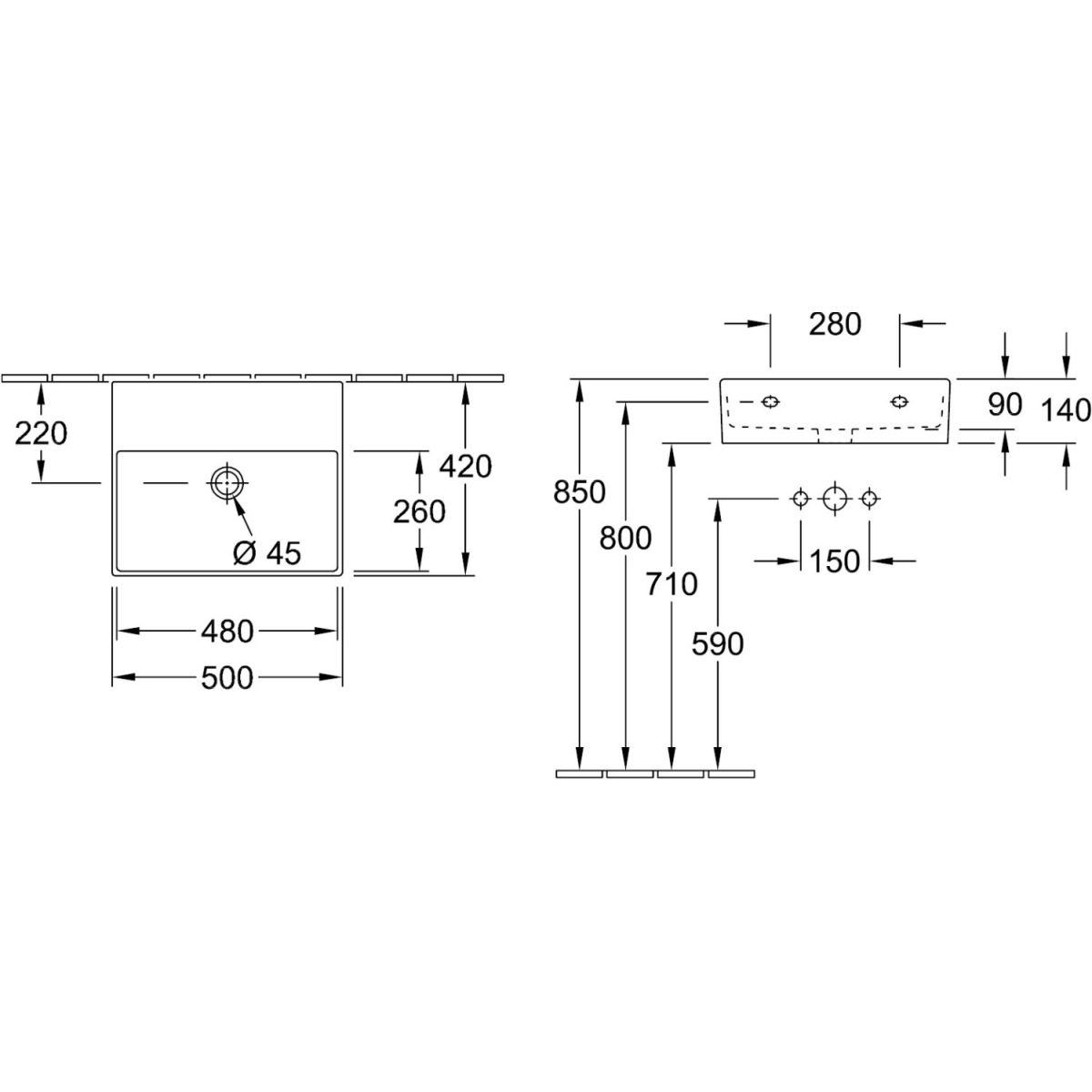 - ohne Wasserhahnloch