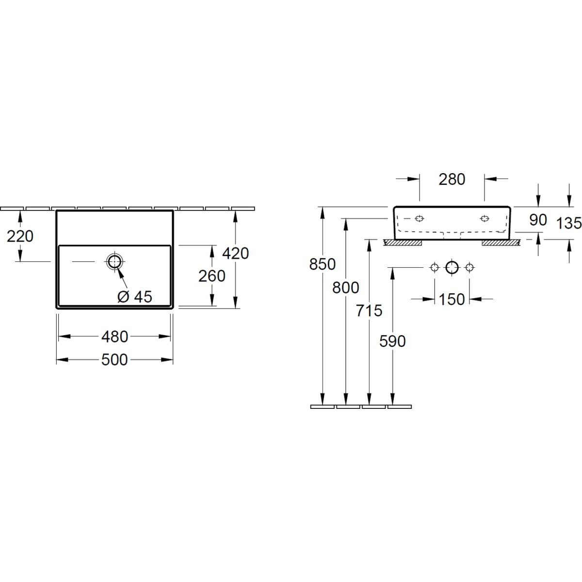 Villeroy & Boch Memento 2.0 Waschbecken 50x42 cm rechteckig Klassisch-Möbel weiß 4A225F01