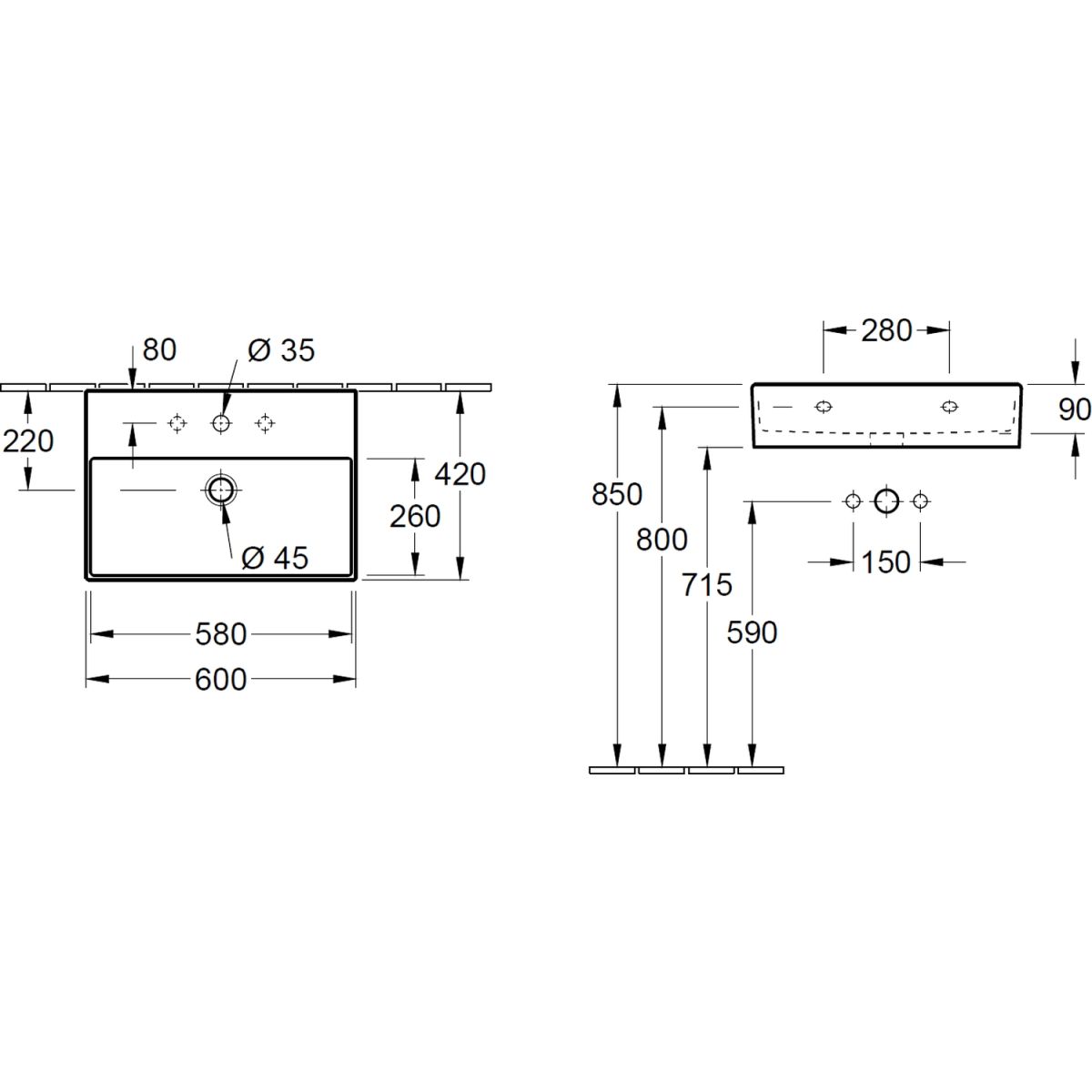 Villeroy & Boch Memento 2.0 Waschbecken 60x42 cm rechteckig Klassisch weiß 4A226101