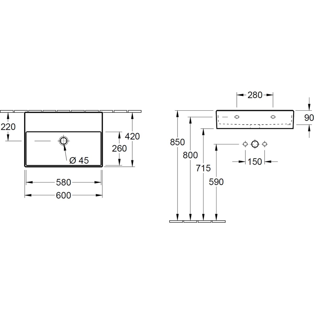 Villeroy & Boch Memento 2.0 Waschbecken 60x42 cm rechteckig Klassisch weiß 4A226301
