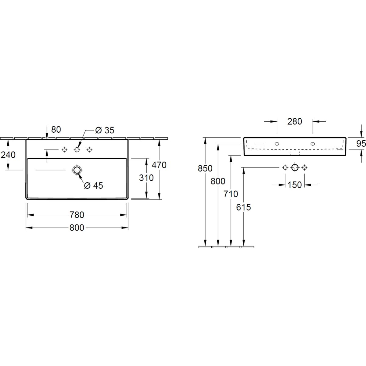 Villeroy & Boch Memento 2.0 Waschbecken 80x47 cm rechteckig Klassisch weiß 4A2280R1