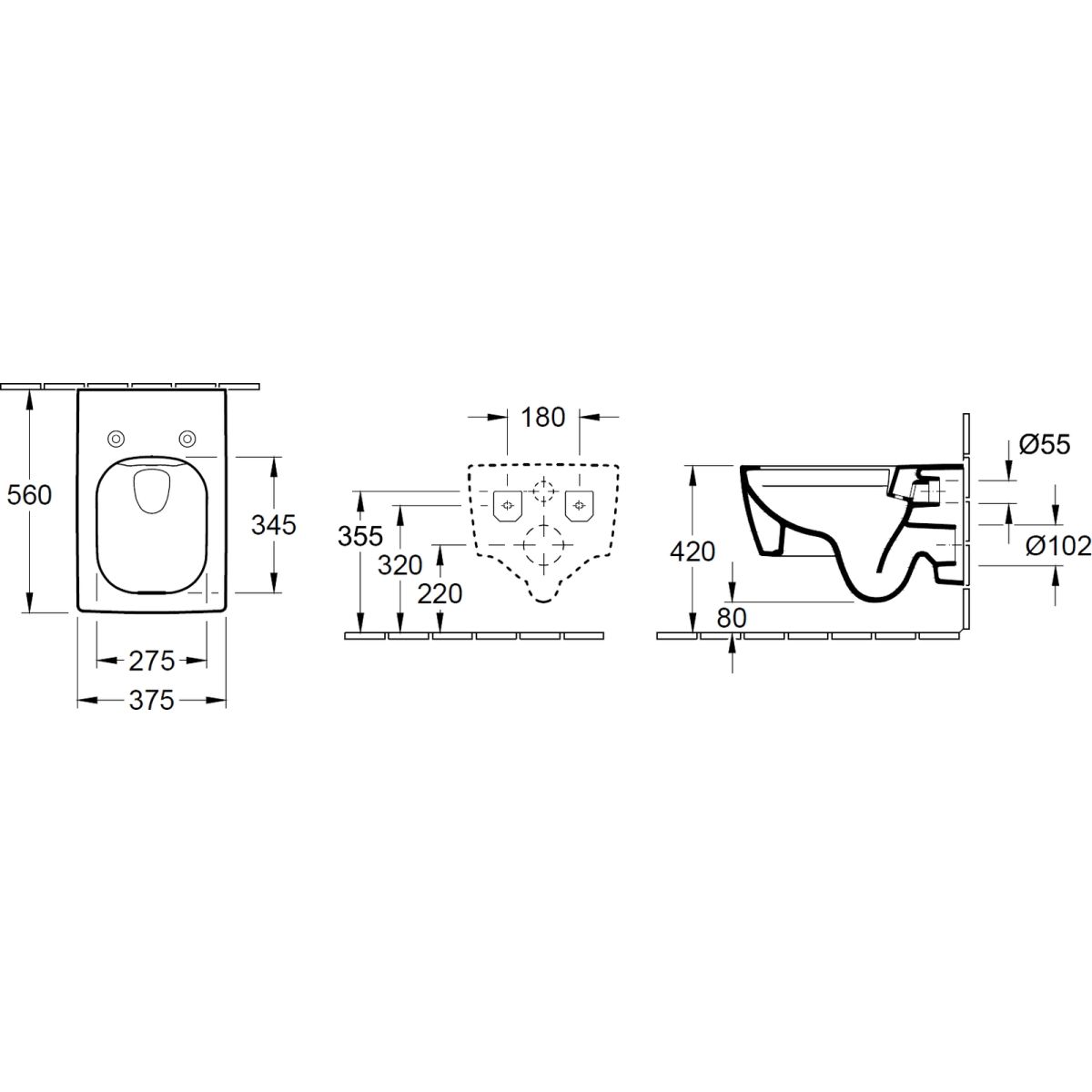 - nicht für die Montage mit Druckspülkästen geeignet