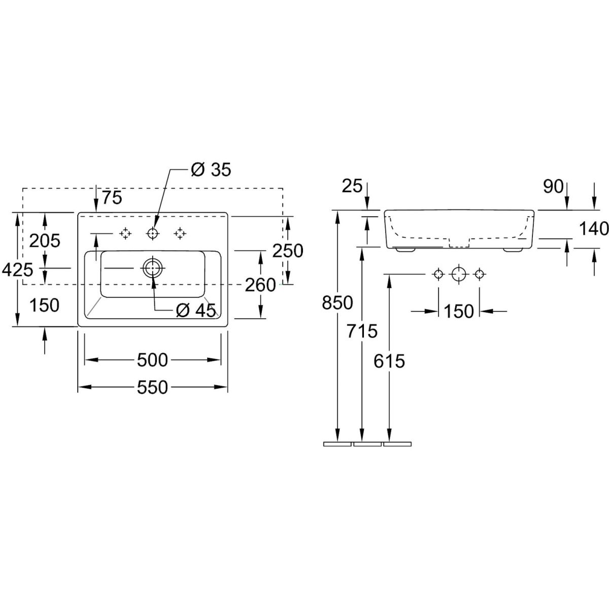 Villeroy & Boch Memento Waschbecken 55x42.5 cm rechteckig Aufsatzwaschbecken weiß 41335501