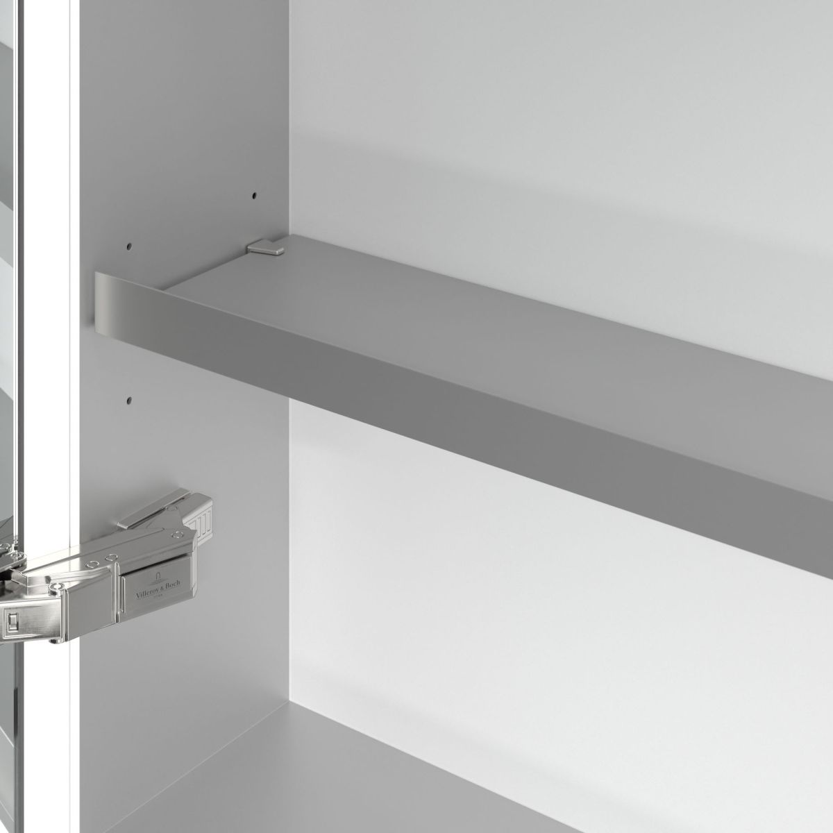 Eine raffinierte und attraktive Lösung für das minimalistische Badezimmer – der Einbau-Spiegelschrank My View+ von Villeroy & Boch setzt mit intelligenten Funktionen und stilvollen Farbakzenten neue Maßstäbe. Der Schrank mit geschlossenen Fächern und offenen Kammern fügt sich perfekt in die Wand ein und sorgt für einen besonders eleganten, minimalistischen Effekt. Die farbige Rückwand setzt individuelle Farbakzente und Designelemente im Badezimmer.